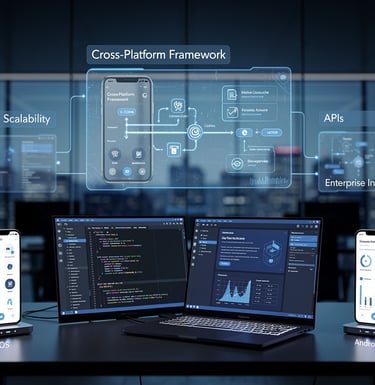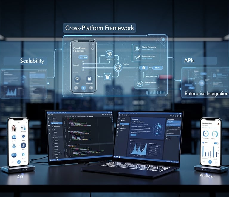Application development frameworks and platforms supporting iOS, Android, and cross-platform solutions for businesses expanding their digital presence.