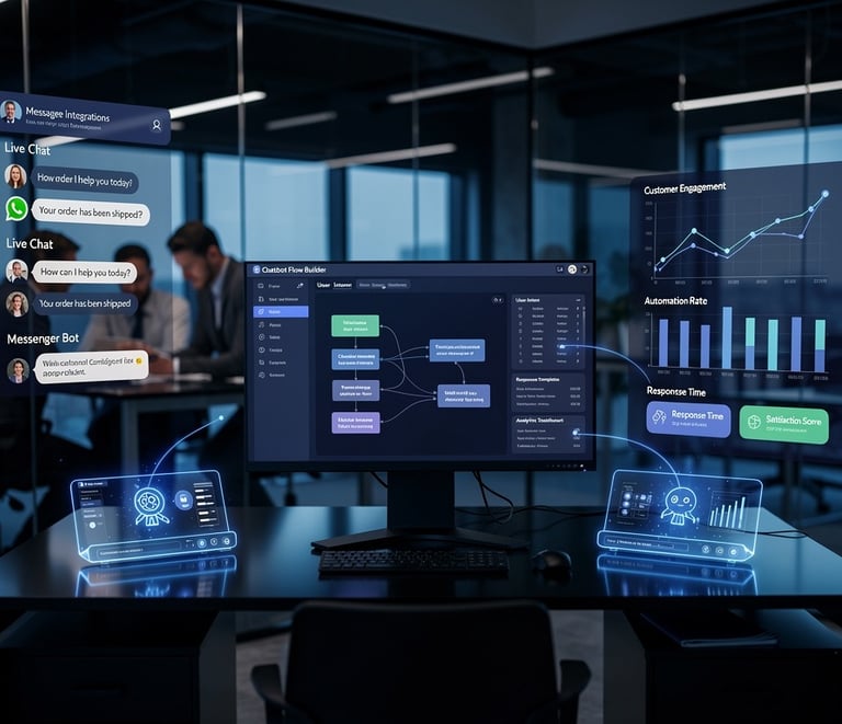 Chatbot development platforms, messaging integrations, and customer engagement tools that automate and enhance client interactions.